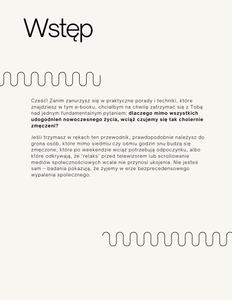 Ten e-book to nie teoria, to Twój osobisty zestaw narzędzi do odbudowy energii i radości życia. Daj sobie szansę na prawdziwy reset – już dziś zmień nawyki i odkryj, jak wspaniale smakuje prawdziwy odpoczynek.